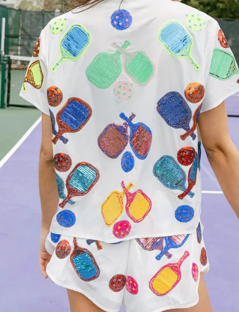 เสื้อยืดคอกลมประดับเลื่อมสำหรับผู้หญิงเสื้อรักบี้ปักเลื่อมสำหรับวันแข่งขันใหม่