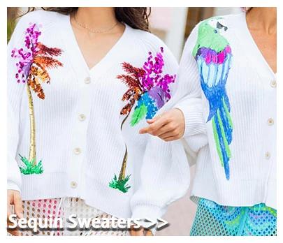 เสื้อสเวตเตอร์แขนยาวสำหรับผู้หญิง, เสื้อสเวตเตอร์แขนยาวผ้าฝ้ายปักเลื่อมสำหรับผู้หญิงกระเป๋าใส่สัมภาระ